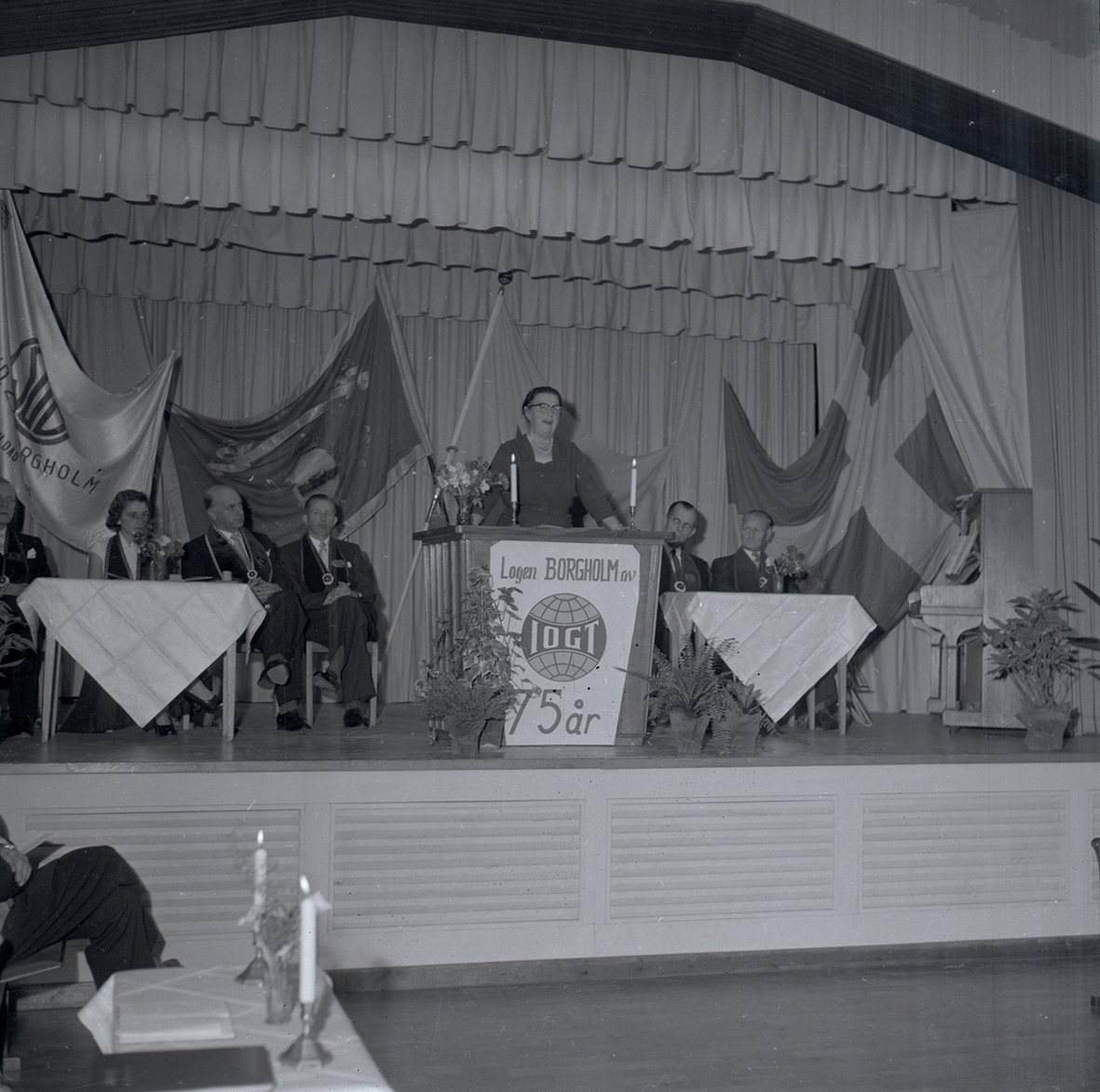 Invigning av lokalen. Kvinna som håller tal. IOGT-logen 75 år den 16/11 -57.