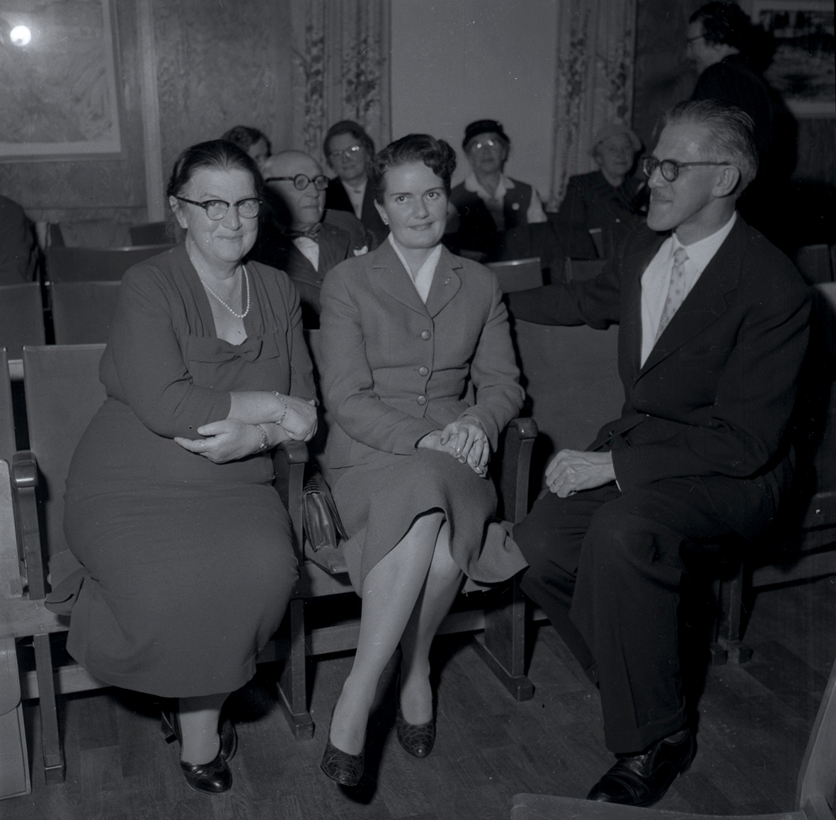 Invigning av lokalen. Folk som sitter i en samlingslokal. IOGT-logen 75 år den 16/11 -57.