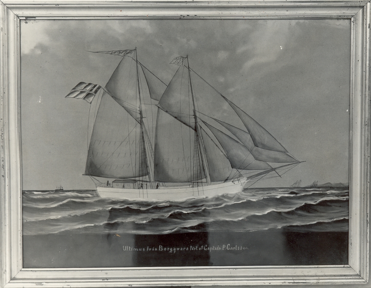 Text: Ultimus från Bergkwara fört av Captain P. Carlsson. Utställning Möre skans 1938. Ägare: G. Alm, Gökalund.
