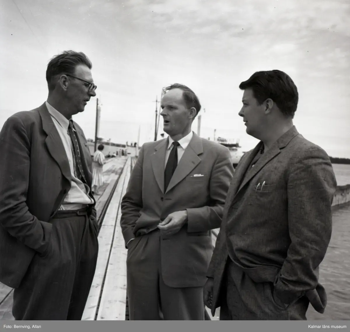 Byxelkroks hamn, eventuellt Bertil Sjöberg, Ragnar Persson och en okänd.