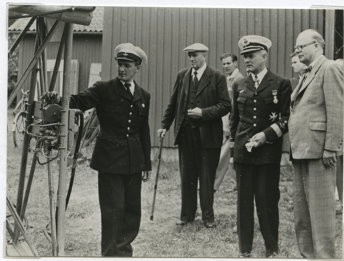 Flottiljen firar 10-årsjubileum. Landshövding Ruben Wagnsson t.h får demonstration. Reproduktioner ur Överste Carlgrens album 1942-54.