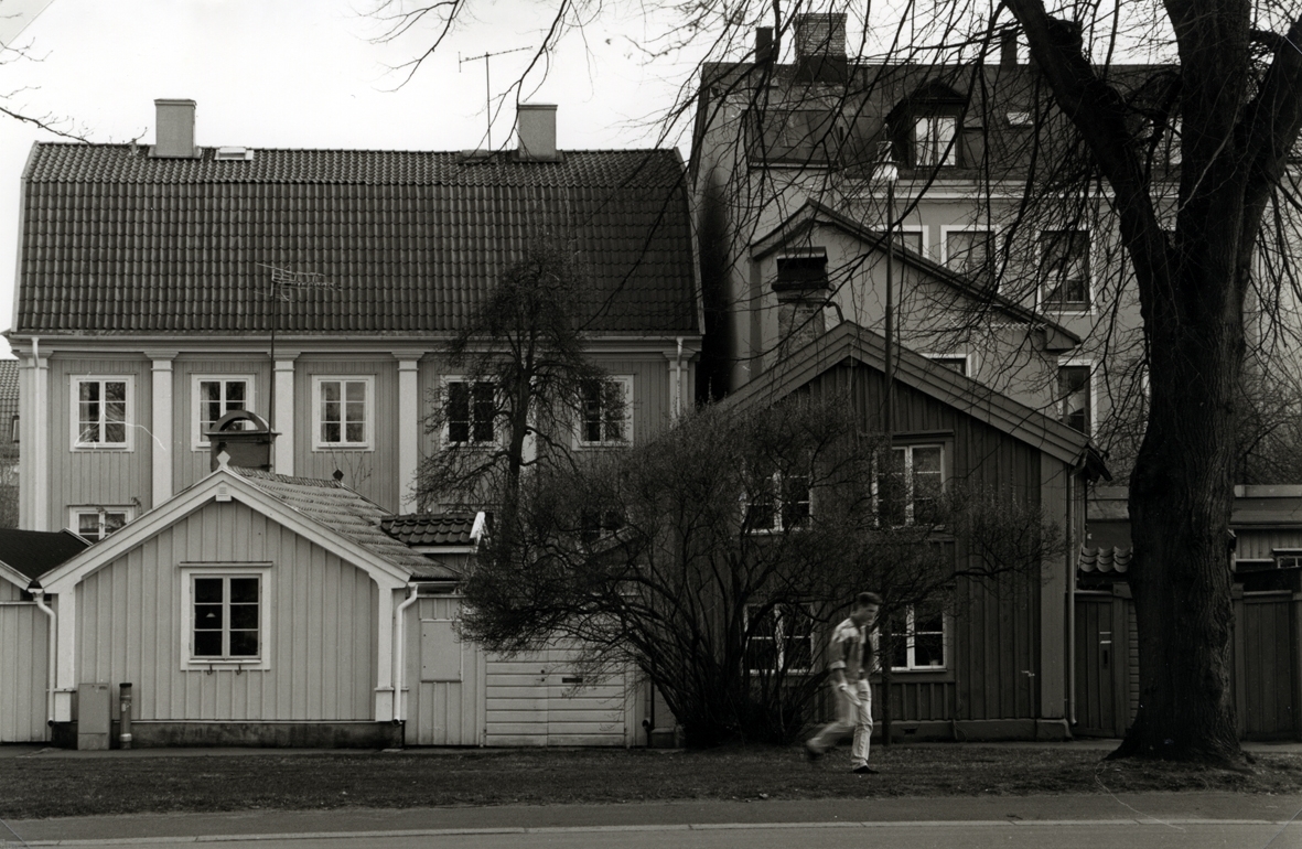 De små trähusen vid Fiskaregatan med Kreugerska huset bakom.