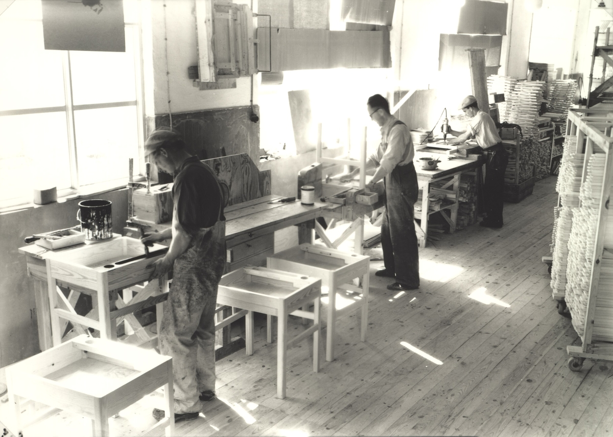 Anställda på AB Standardsnickerier arbetar med att tillverka skolbänkar.