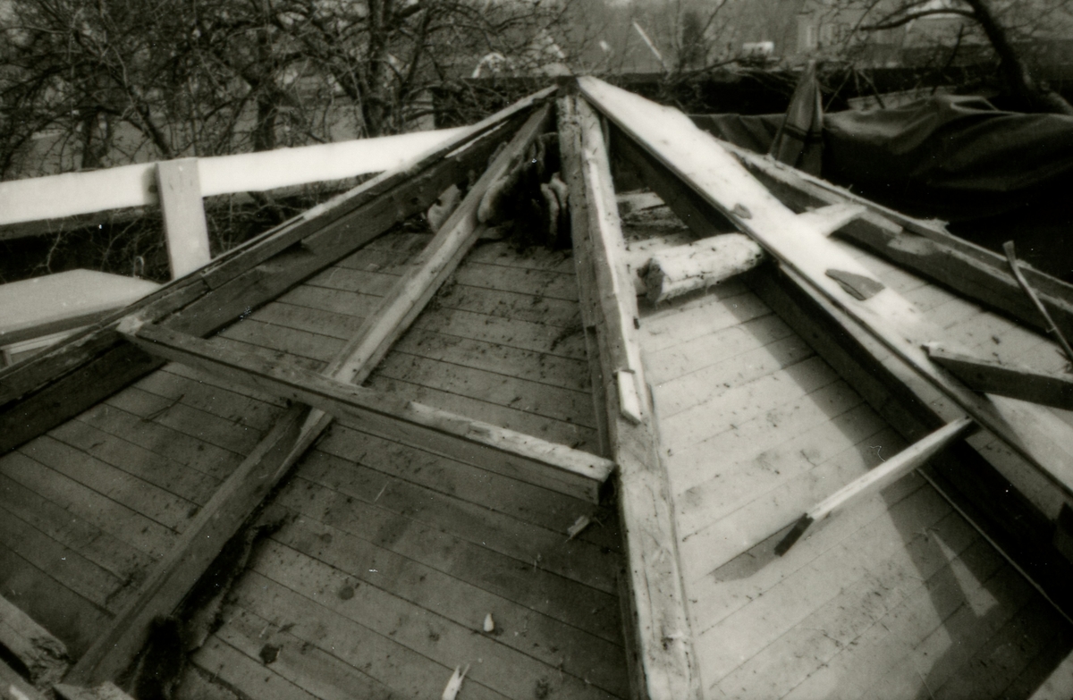 Lusthuset på Krusenstiernska gården, taket från västra hörnet mot östra hörnet.