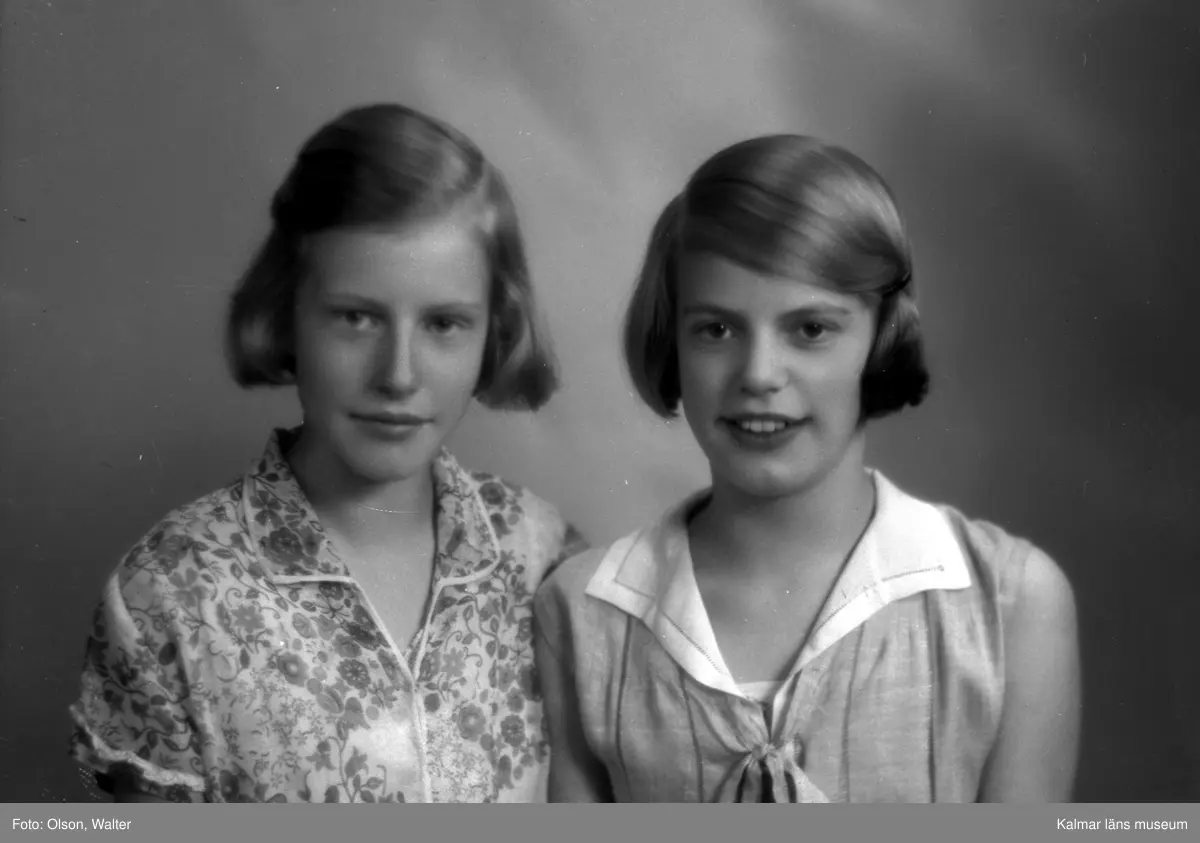 Ateljébild på två flickor. Enligt Walter Olsons journal är bilden beställd av friherrinnan Anna Rappe ifrån Strömsrum.