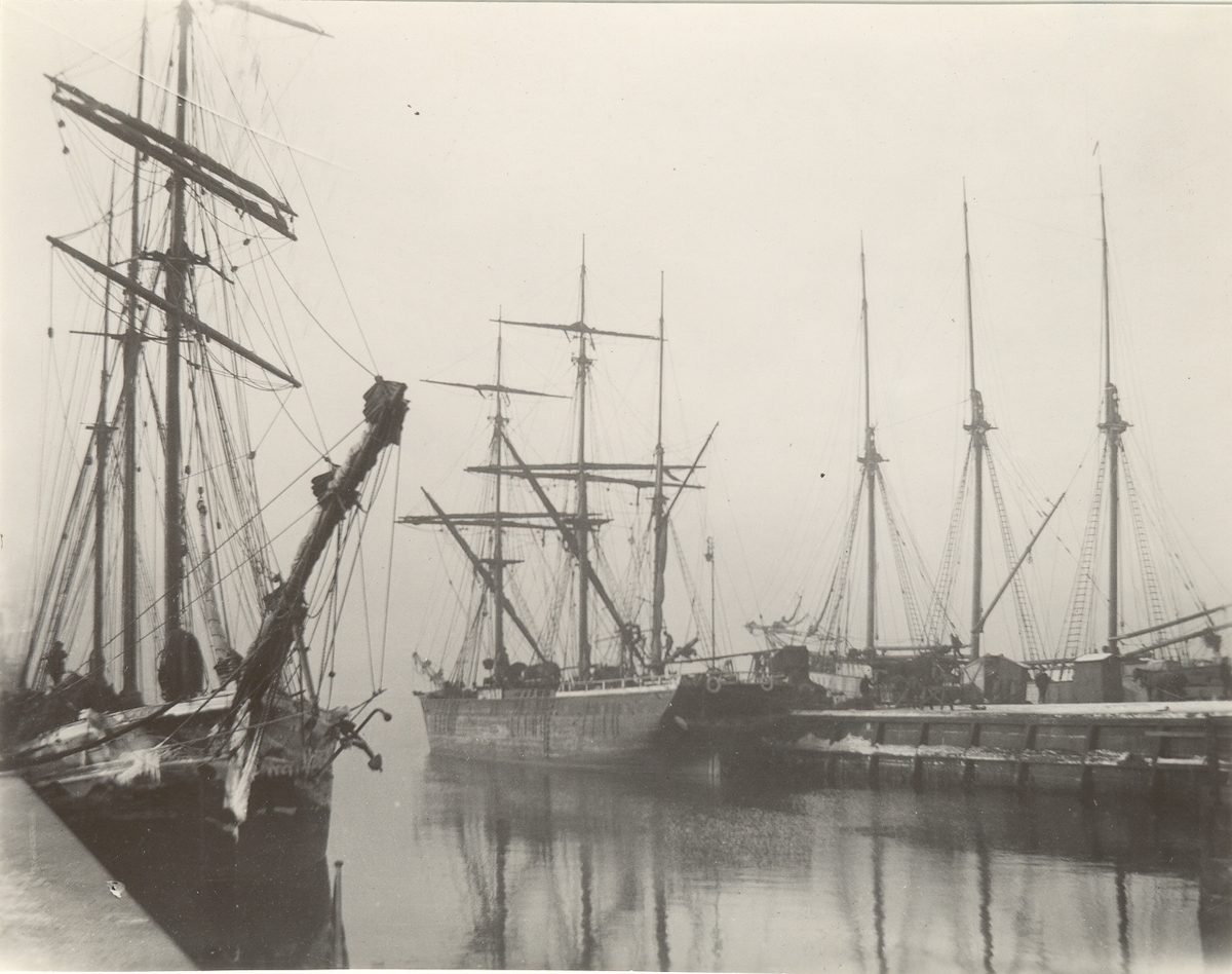 Från venster: SKsSkib "Galathea" - dansk Bark "Fanny" av Persgrund (mitten).