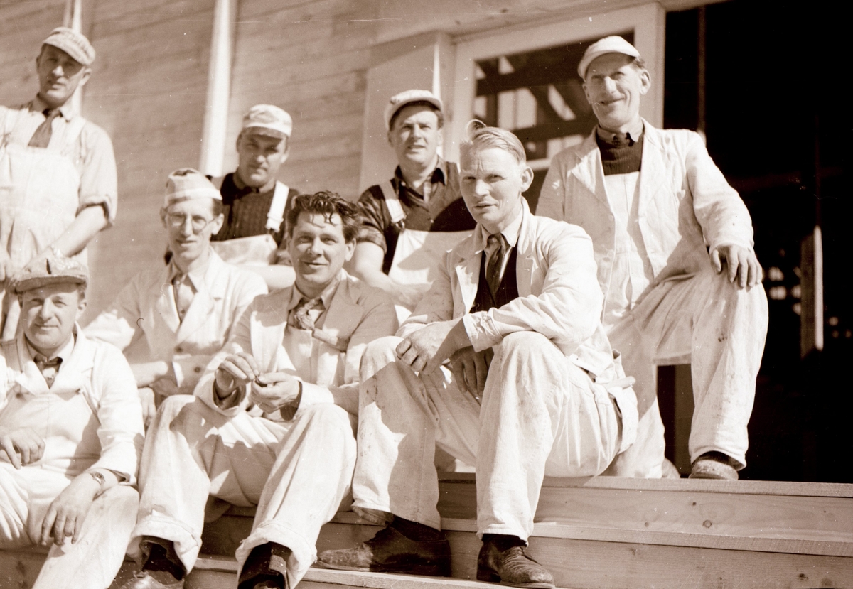 Troligen bagare som sitter på en trappa.
