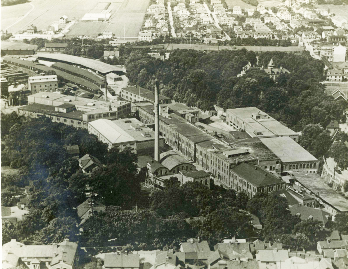 Papyrus fabriksområde flygbild från Sydost.