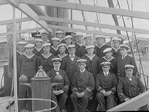 Örlogs- och sjömätningsfartyget HMS Svalan med besättning i Varbergs hamn. Hon byggdes vid Bergsunds Mekaniska Verkstad i Stockholm 1881 (klassad som ångslup) och användes som sjömätare fram till utrangering 1944. Sjömätning innebär uppmätning av havsbottnens topografi och utförs idag av Sjöfartsverket, men tidigare av Sveriges flotta.