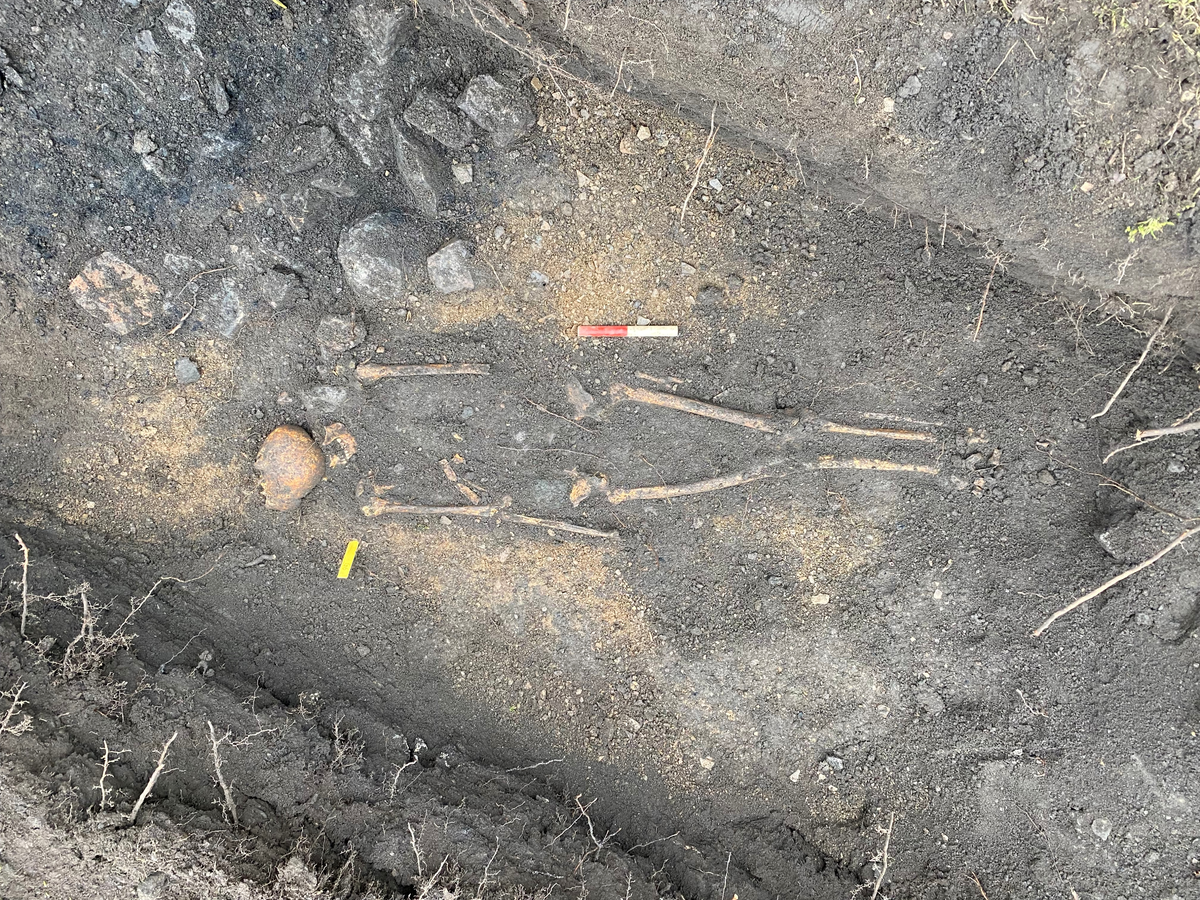 Ett tidigmedeltida skelett efter en gravlagd kvinna på Brahekyrkogården på Visingsö i Jönköpings kommun och län.