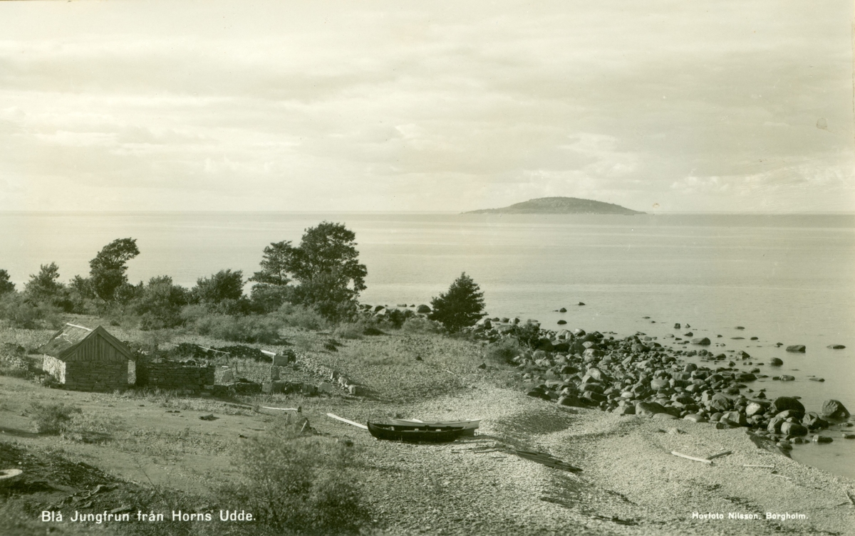 Vykort med motiv av Blå Jungfrun från Horns Udde.