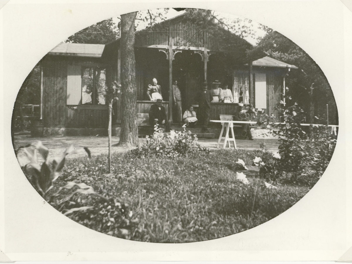 Bryggmästare Carlsson ca 1900. Villan i Tallhagen, på samma plats som huset Rådmansgatan 41, tillkom 1892 och revs 1940. Från vänster: Sittande Axel Åhman. Stående Hilda Åhman född Pousette, Waldemar Åhman. Sittande Marie - Louise Åhman, Stående Stefan Åhman, Axelina Åhman och Ingrid Åhman. Dessa bodde i Kalmar på Södra Långgatan 40.
