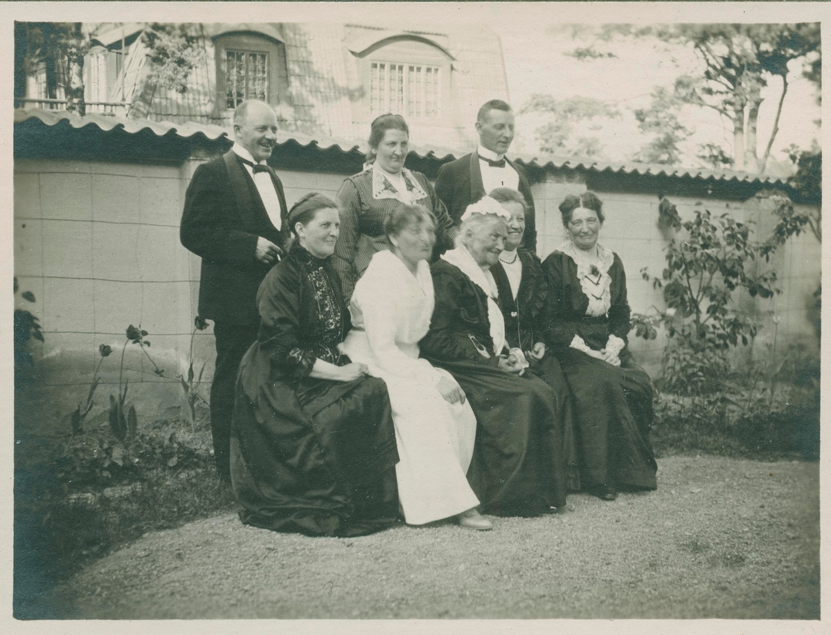 Stående från vänster Carl Sabelström, Kjerstin Andersson, Constans Sabelström. Alla hennes då levande barn.