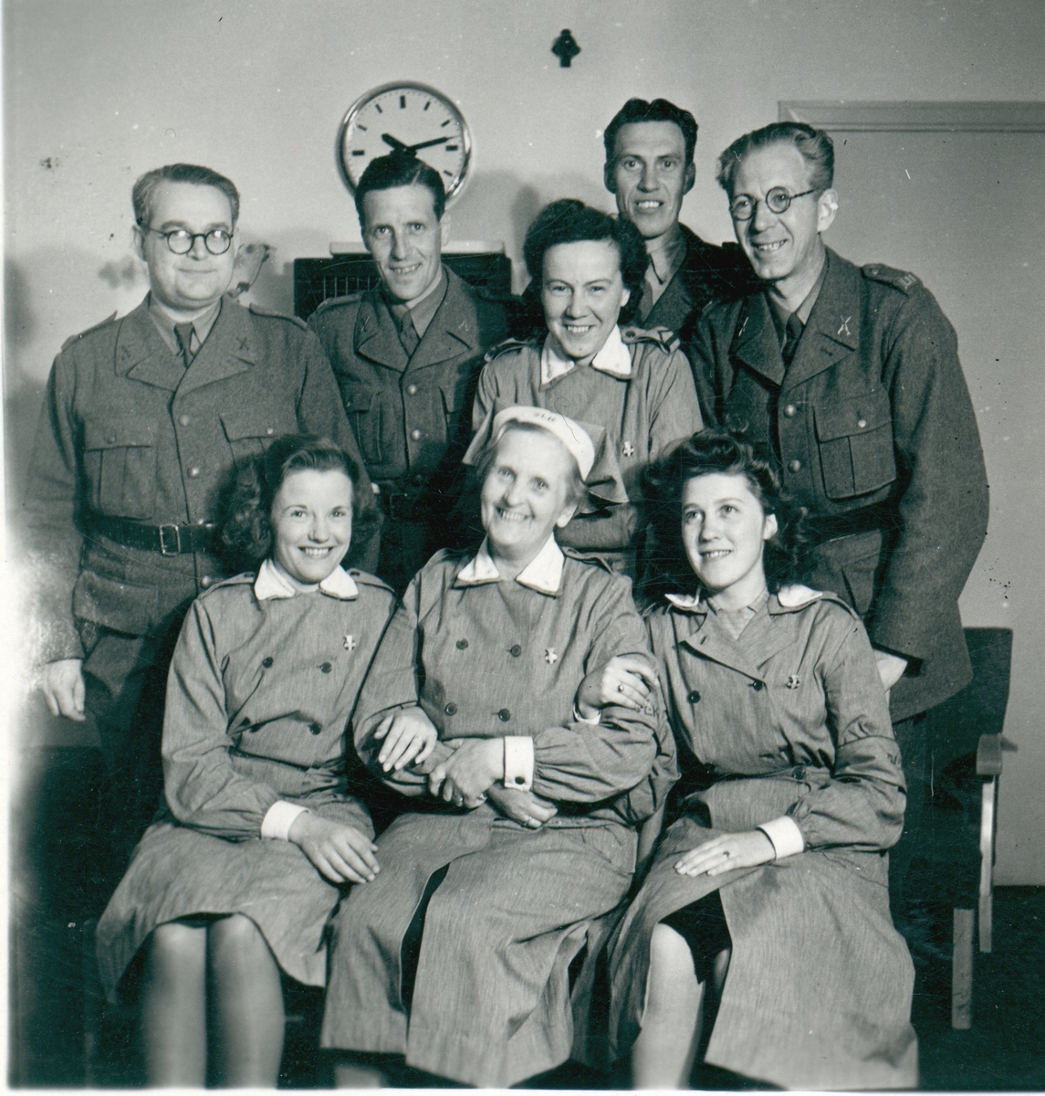 Gruppfoto av personal vid Kalmar flygflottilj under beredskapsåren.