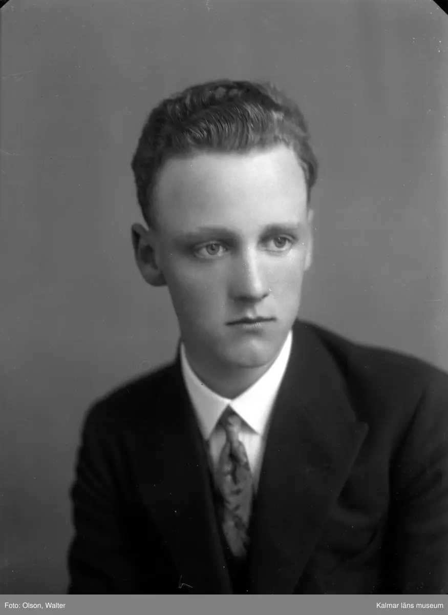Ateljébild på en man. Enligt Walter Olsons journal är bilden beställd av S Henriksson ifrån Vegagatan 13.