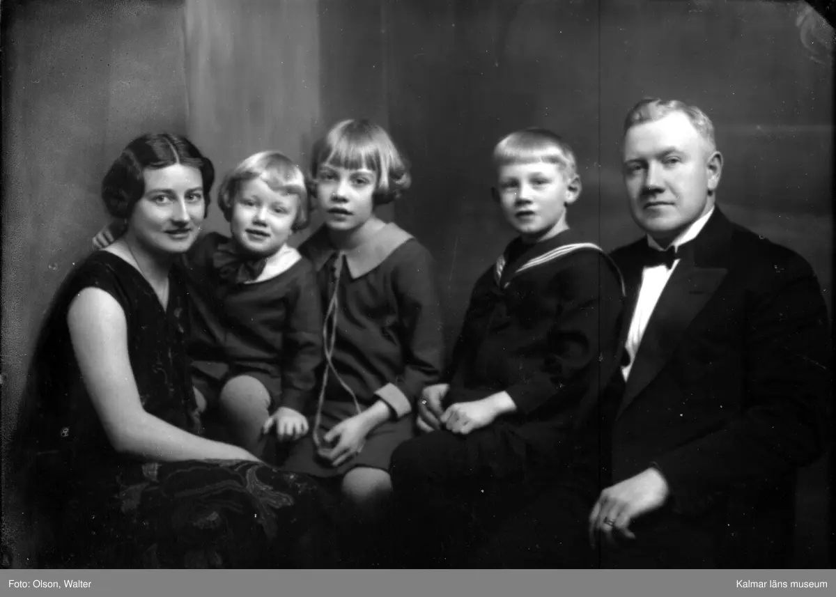 Gruppbild i ateljé. Enligt Walter Olsons journal är bilden beställd av herr Oskar Jansson ifrån Kvarnlyckan.