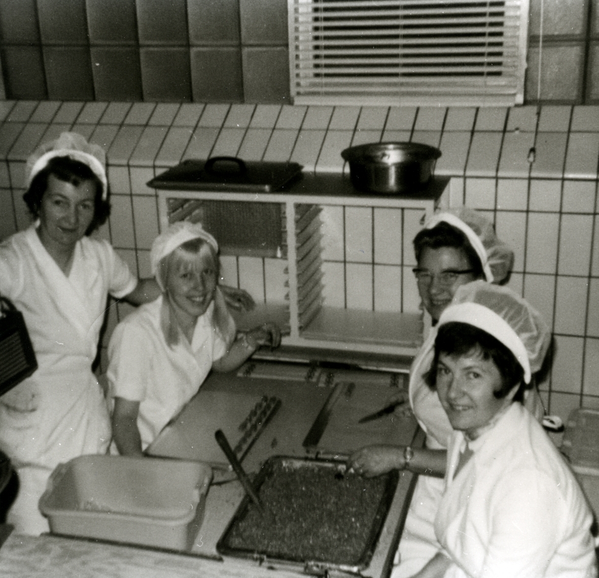 Från vänster: Margit Hedin, okänd ung dam, Hildegard Standtke, okänd dam.