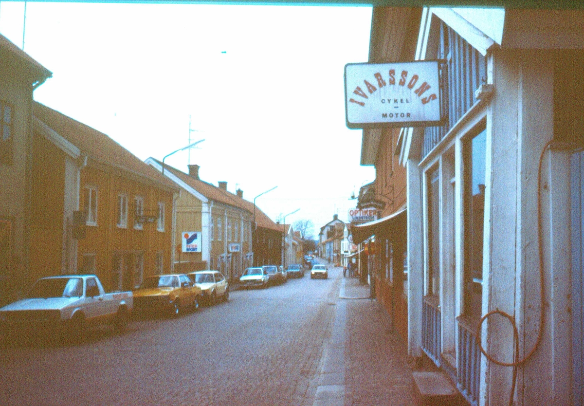 Butiksskylt där det står "Ivarssons Cykel och Motor" på Storgatan i Vimmerby.