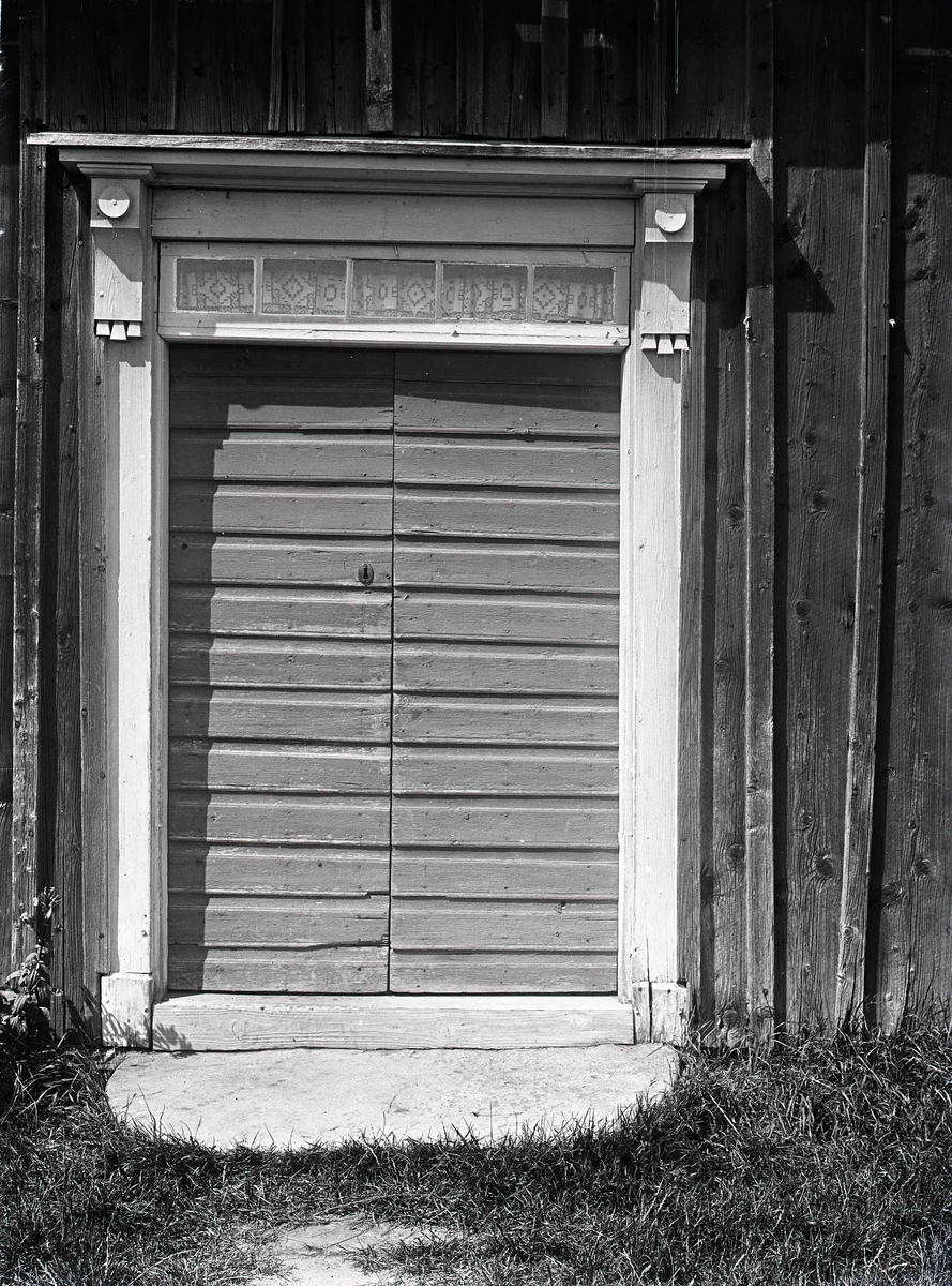 En dubbeldörr med dörröverstycke i Gunnarsmåla.