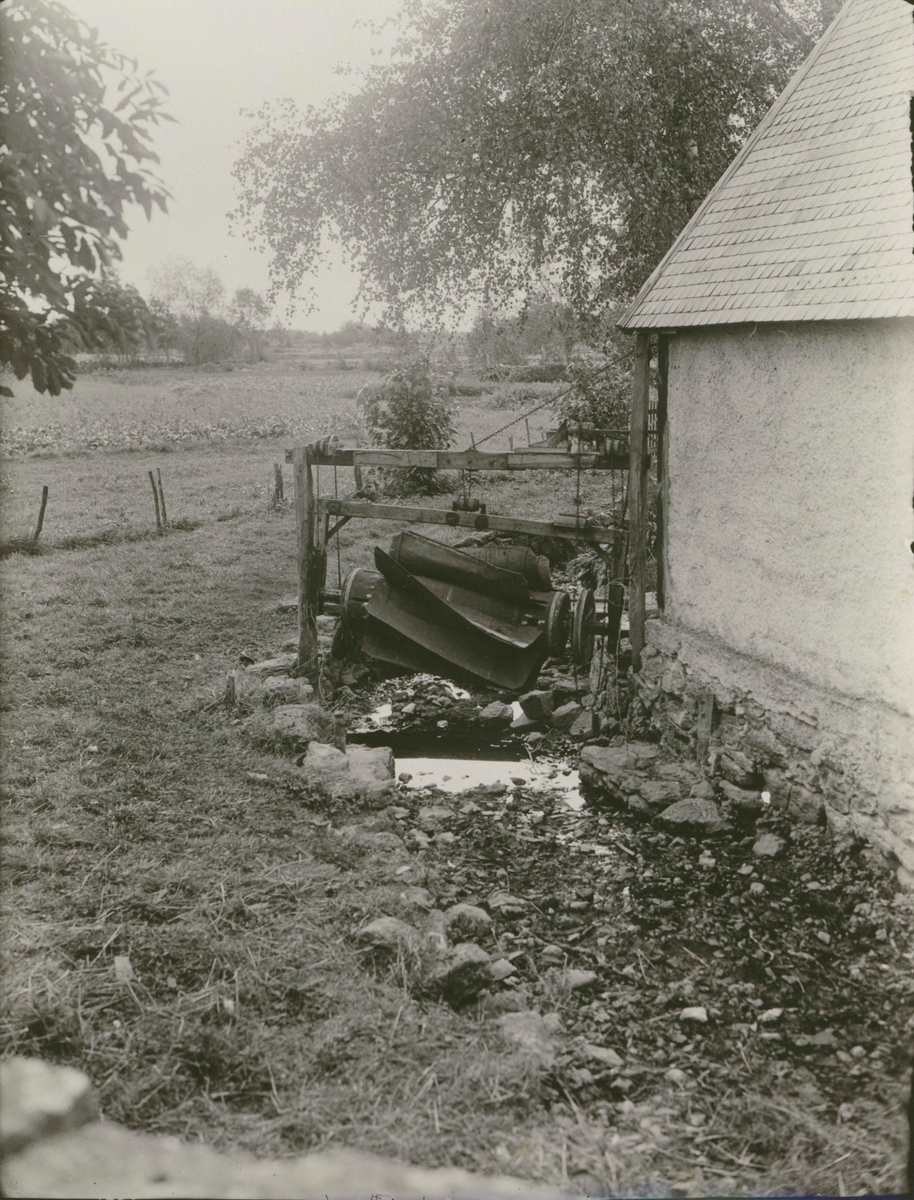 Ett vattenhjul vid en ekonomibyggnad i Jordsläta.