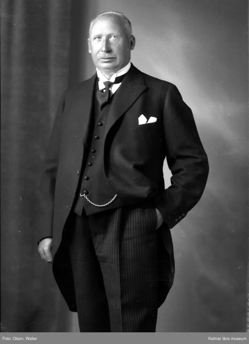 Riksdagsman Karl Magnusson i helfigur och porträtt.