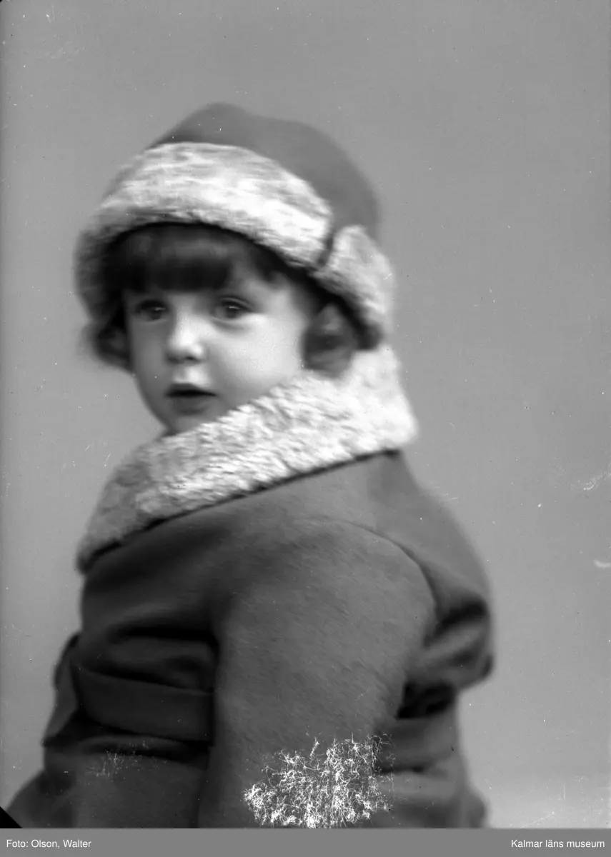 Ateljéfoto. Liten flicka i hatt och kappa.