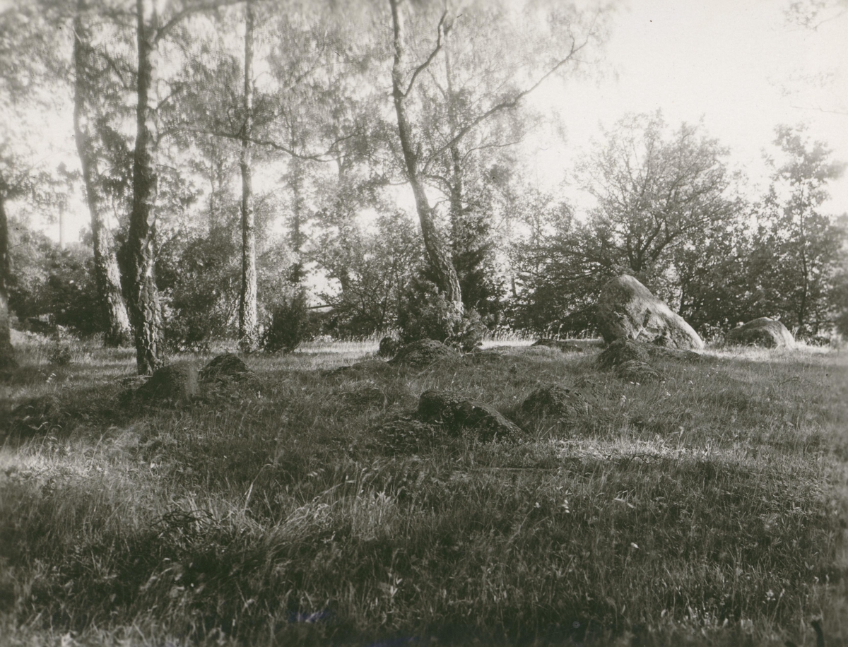 Fasta fornlämningar i Herman Jonssons hage vid ån. Fridlysta 1930. Skeppssättning.