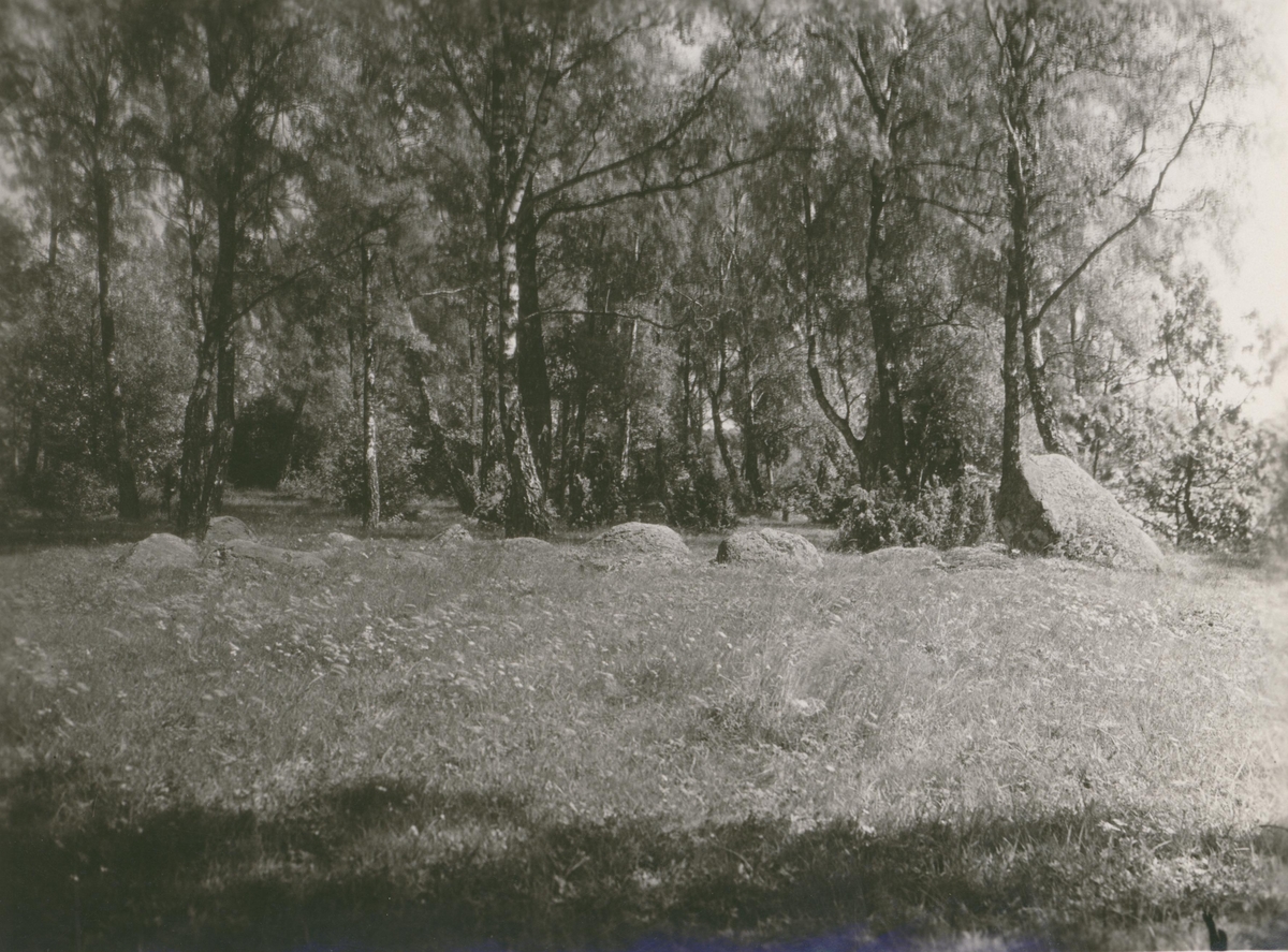 Fasta fornlämningar i Herman Jonssons hage vid ån. Fridlysta 1930. Skeppssättning.