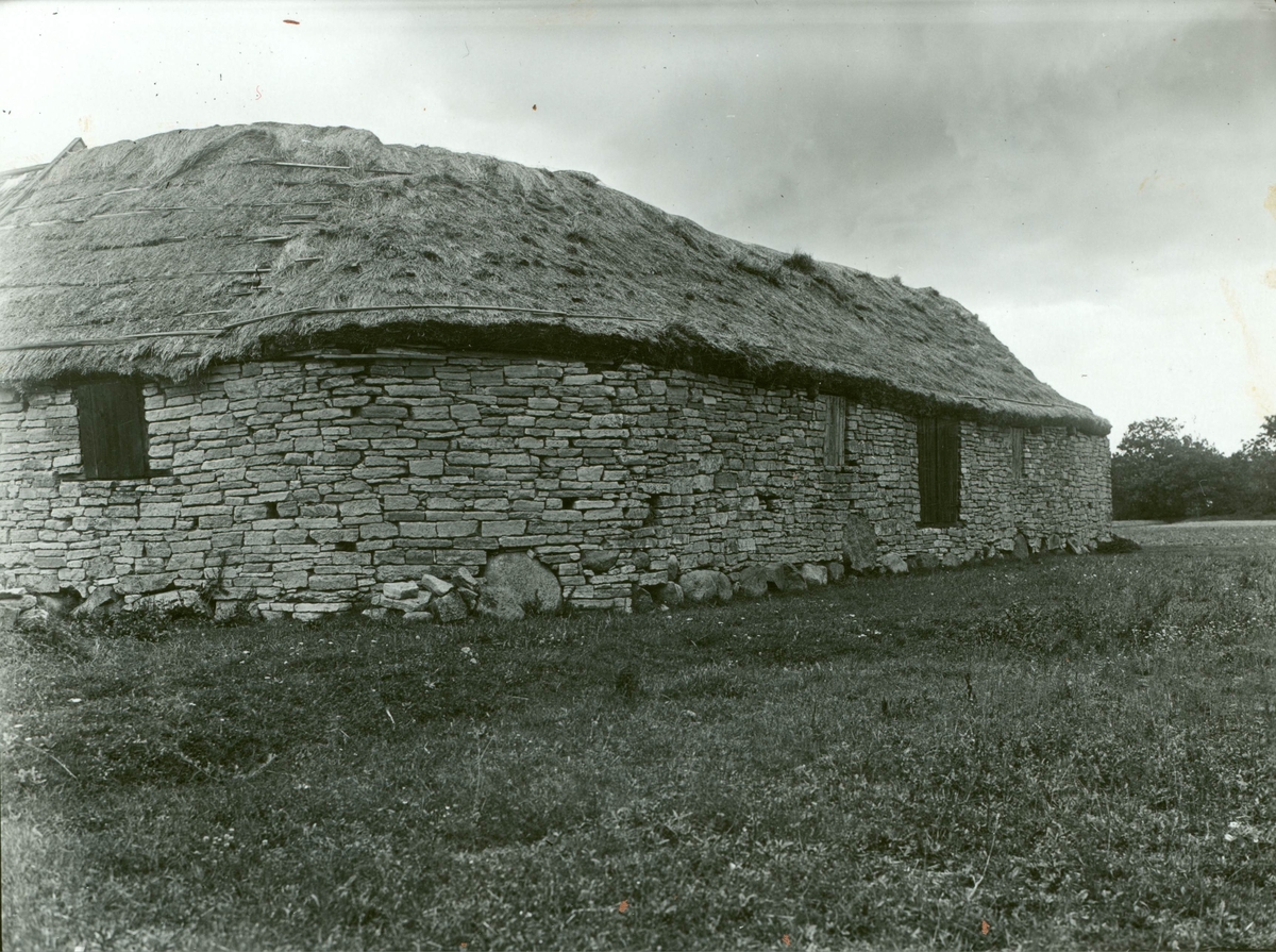 En ladugård med stenfasad och stråtak i Ebbegärde.