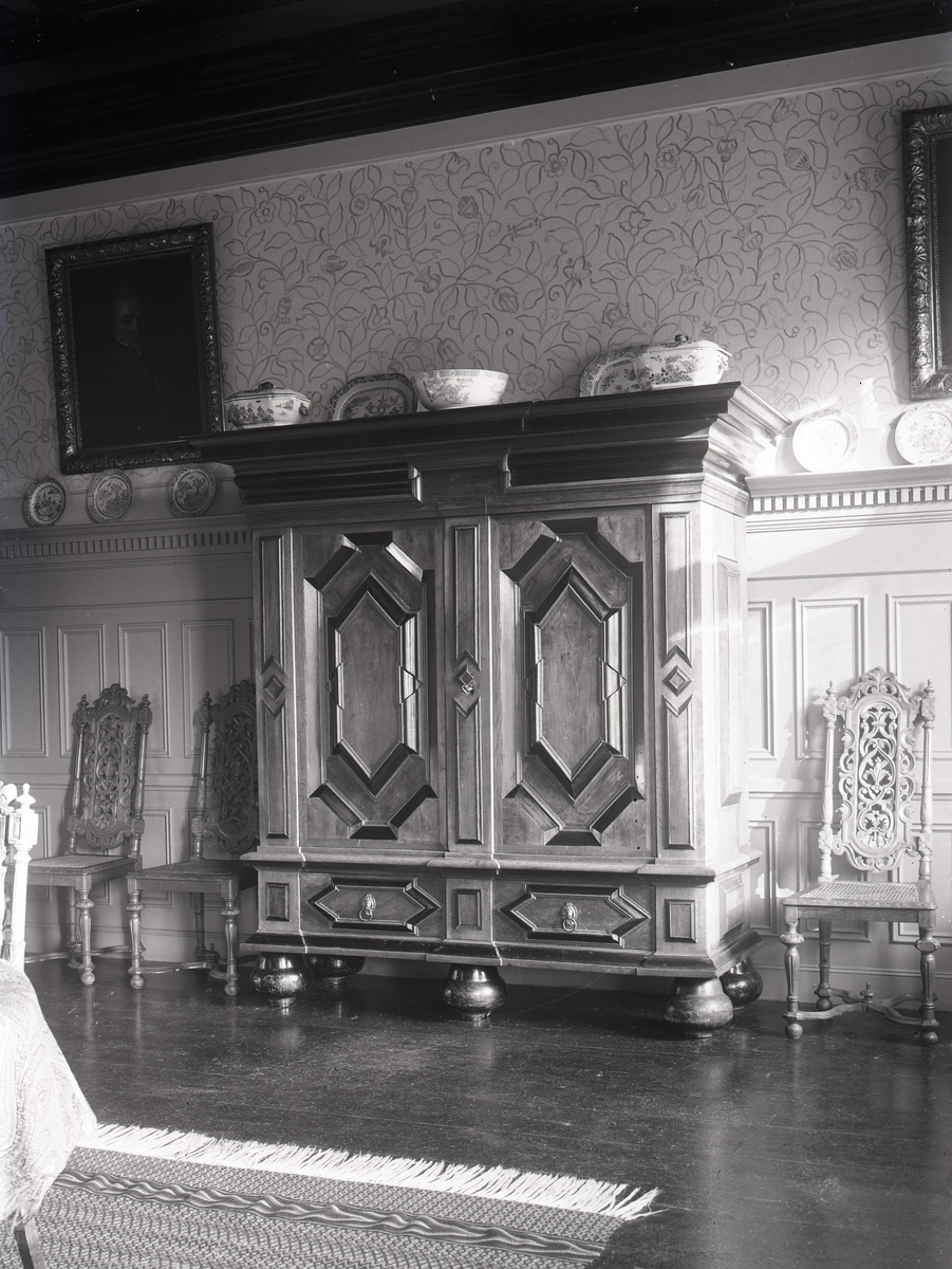 Stolar, skåp, målningar och prydnadsfat i herrgården Fågelfors bruk.