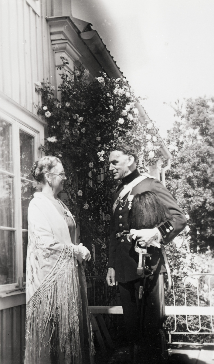 Titel: Jägmästare Arne i uniform med dam.