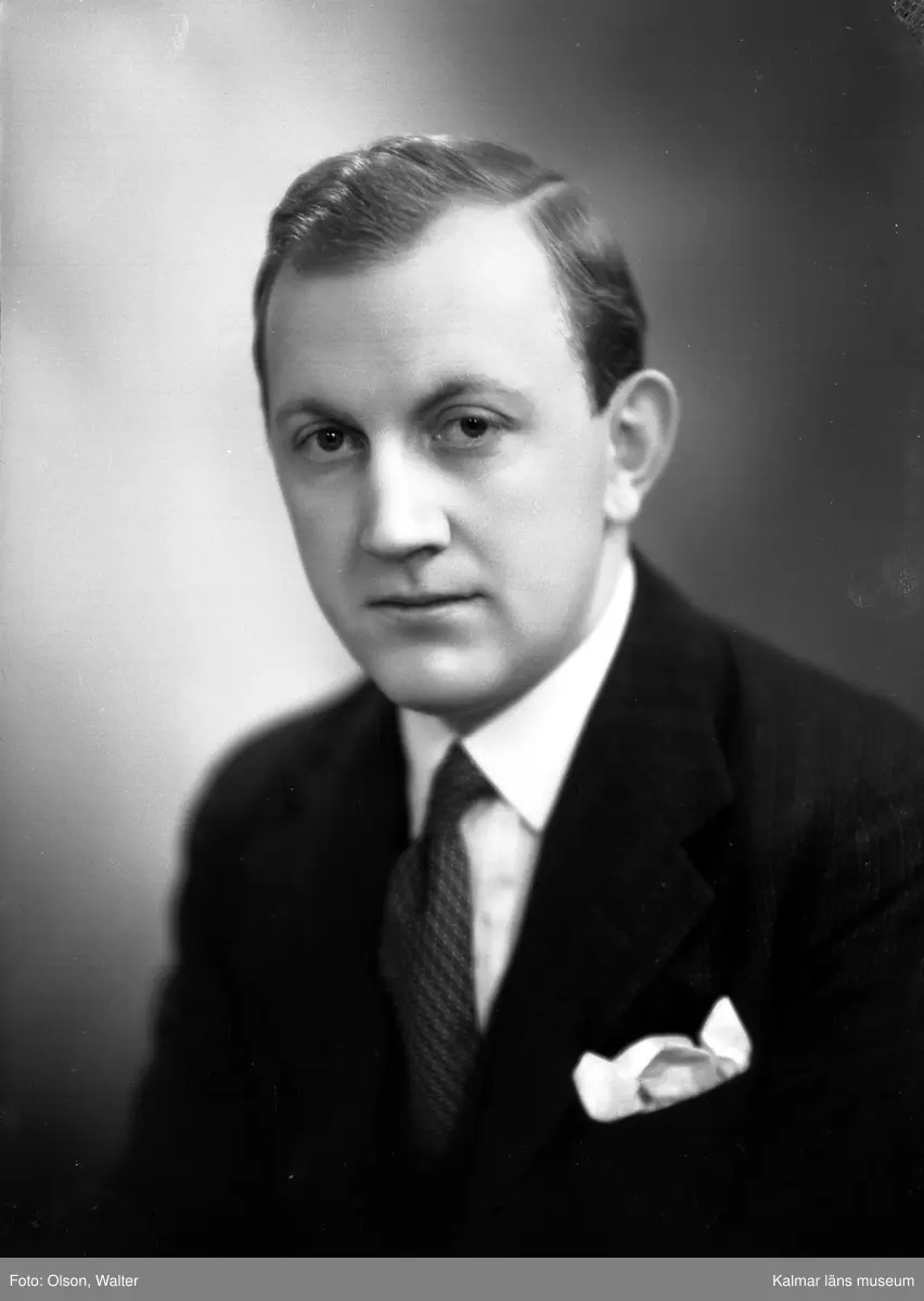 Ateljébild på en man. Enligt Walter Olsons journal är bilden beställd av Hj. Ibohm ifrån Esplanaden 33 i Kalmar.