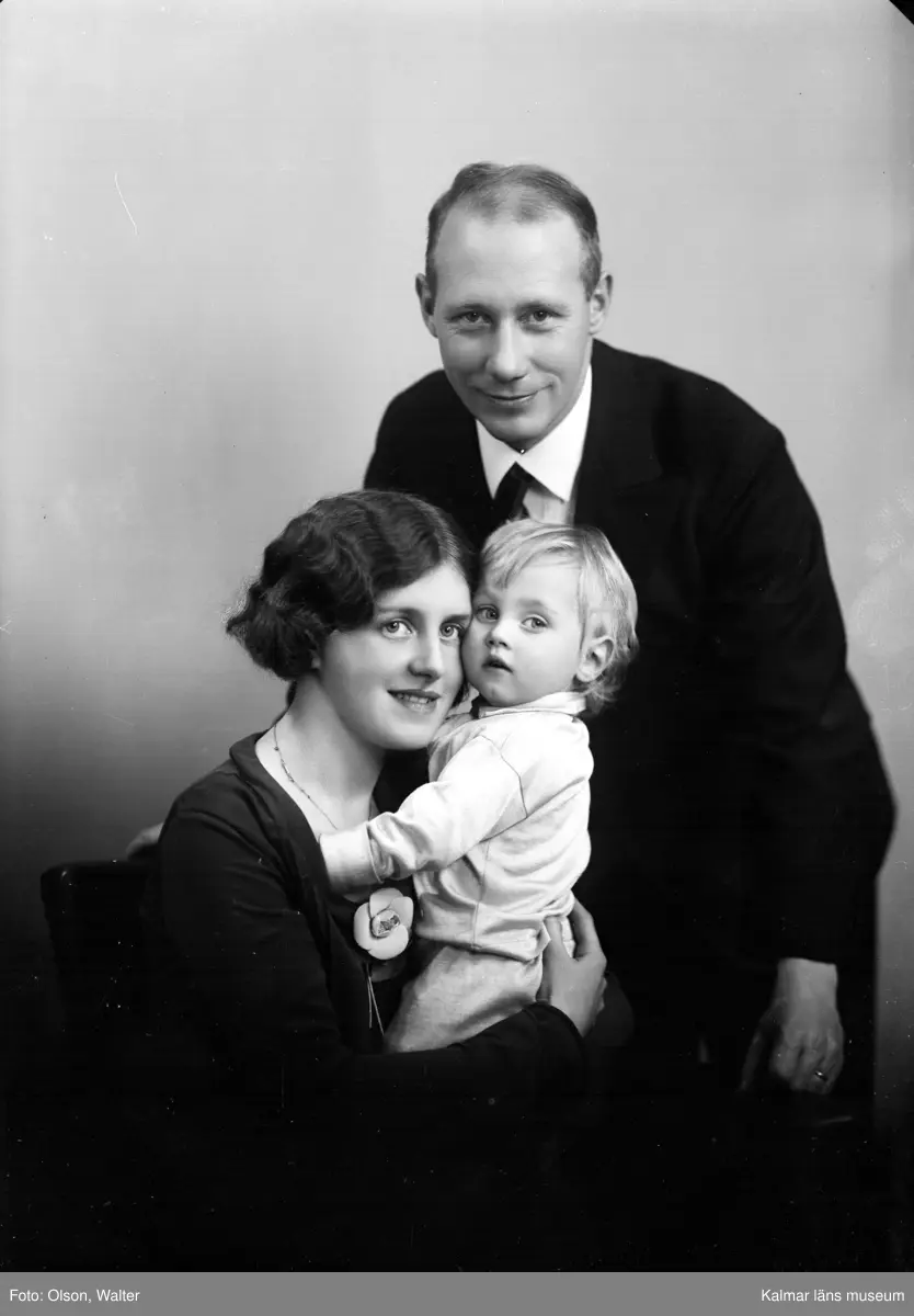 Ateljébild på man, kvinna och barn. Enligt Walter Olsons journal är bilden beställd av herr N Olsson ifrån Hornsgatan 5 i Kalmar.