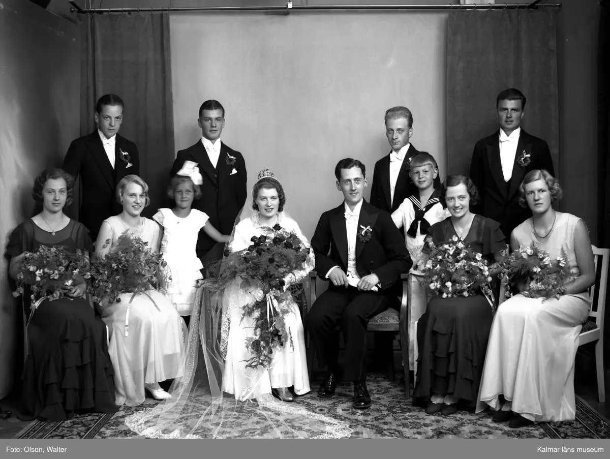 Bröllopsbild. Enligt Walter Olsons journal är bilden beställd av herr Yngve Winther. Kalmar läns museum känner inte till om den personen är avporträtterad.