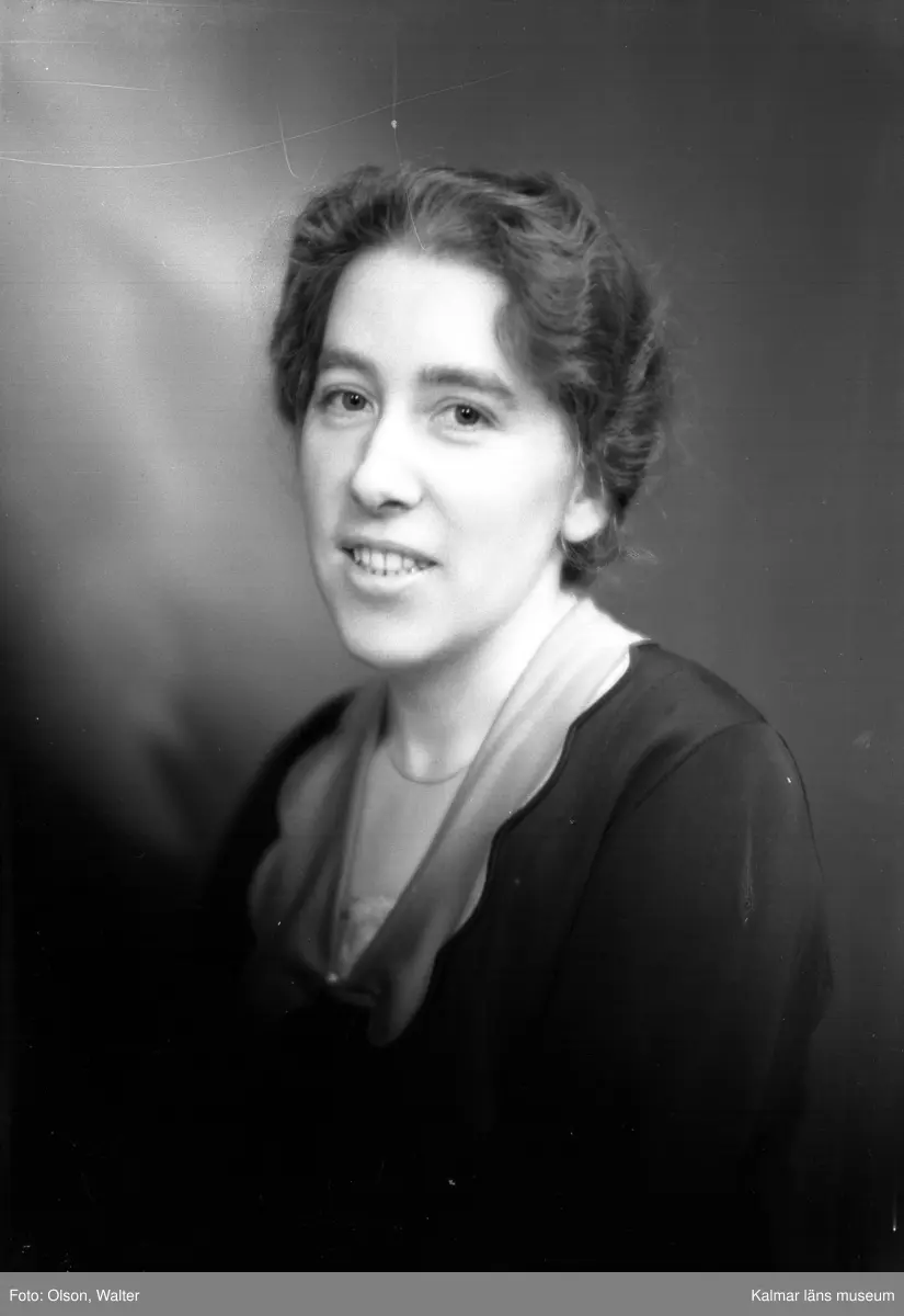 Ateljébild på en kvinna. Enligt Walter Olsons journal är bilden beställd av Dagmar Andersson ifrån Nygatan 17 i Kalmar.