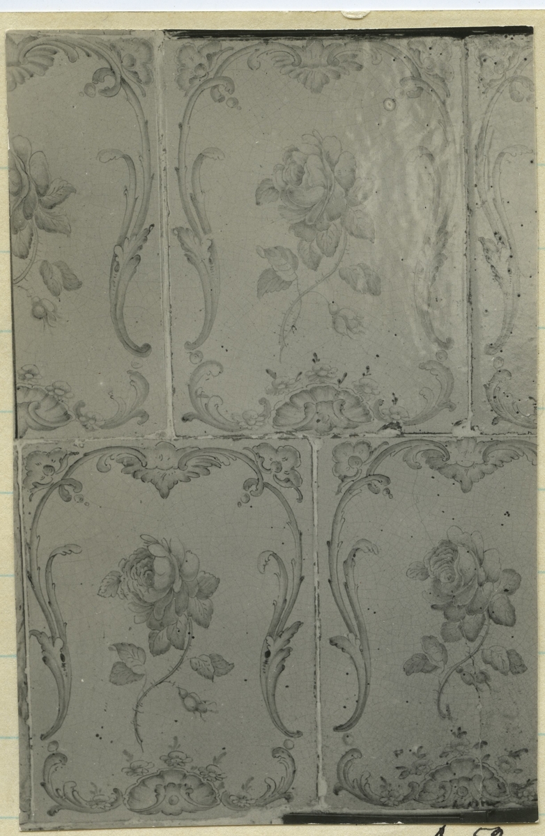 Titel: Flat, blådekorerad kakelugn, på Kaggensgatan 2 i Kalmar.