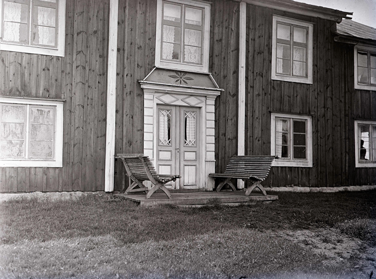 Välsgärde i Fagerhult socken. Ett bostadshus med ett par bänkar vid portalen.