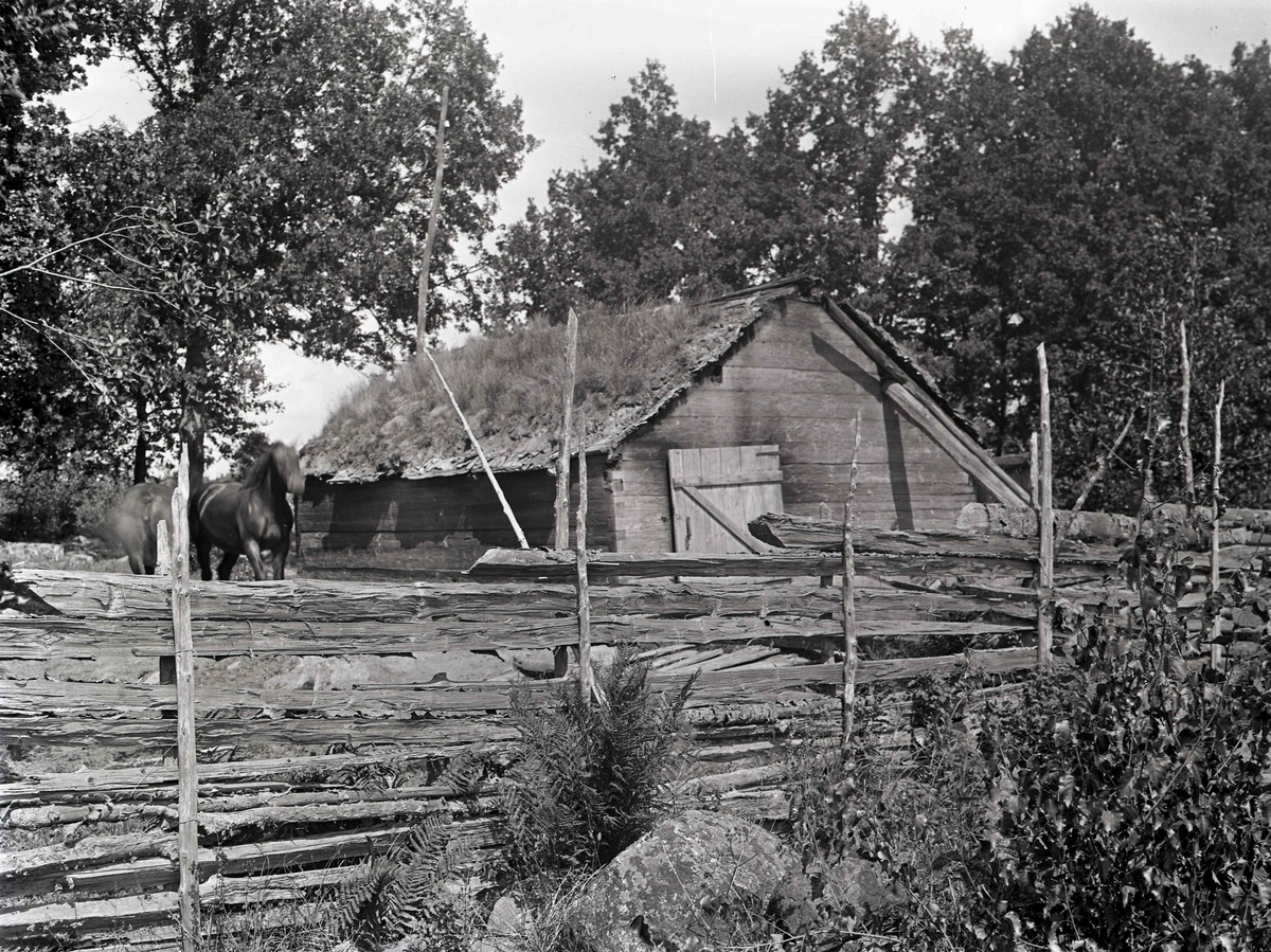 En ekonomibyggnad och gärdsgård i Gunnarsmåla.