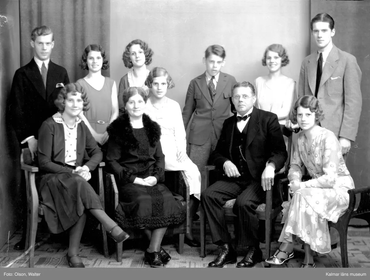 En gruppbild. Enligt Walter Olsons journal är bilden beställd av herr Dunge ifrån Norra vägen i Kalmar. Kalmar läns museum känner inte till om den personen är avbildad.