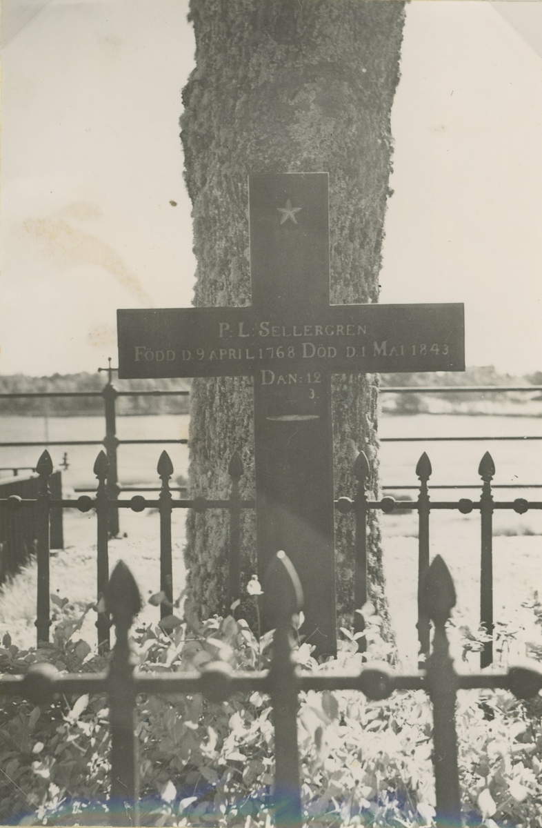 Sellergren, P.L. Komminister. Född 1768 9/4 död 1843 1/5. Graven på Hälleberga kyrkogård.