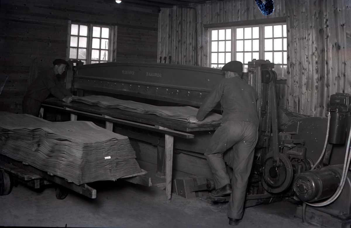 Folk som arbetar med träbearbetning. Bohman & Johanssons fanérfabrik, Blomstermåla.