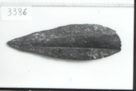 Spjutspets i flinta. Arkeologiskt fynd.