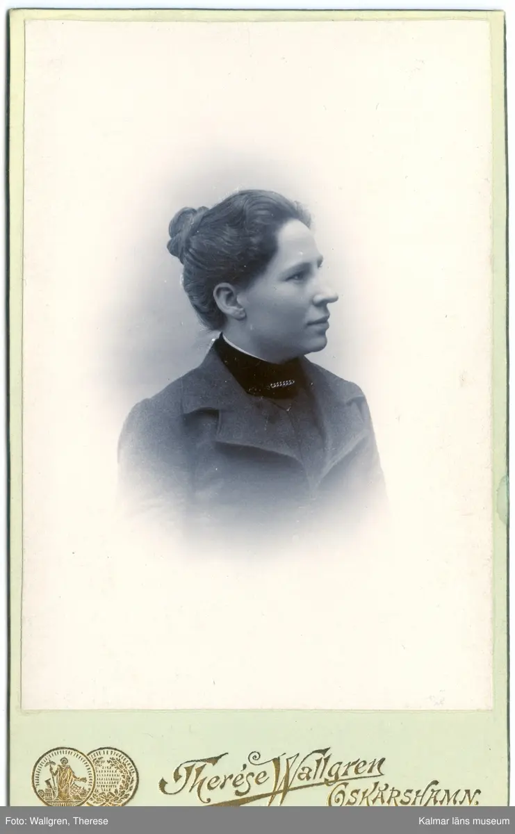 Porträtt på Anna Winell. Troligtvis är fotografiet taget under tiden hon var fotografbiträde hos Therése och Lisa Wallgren 1898-1902.
