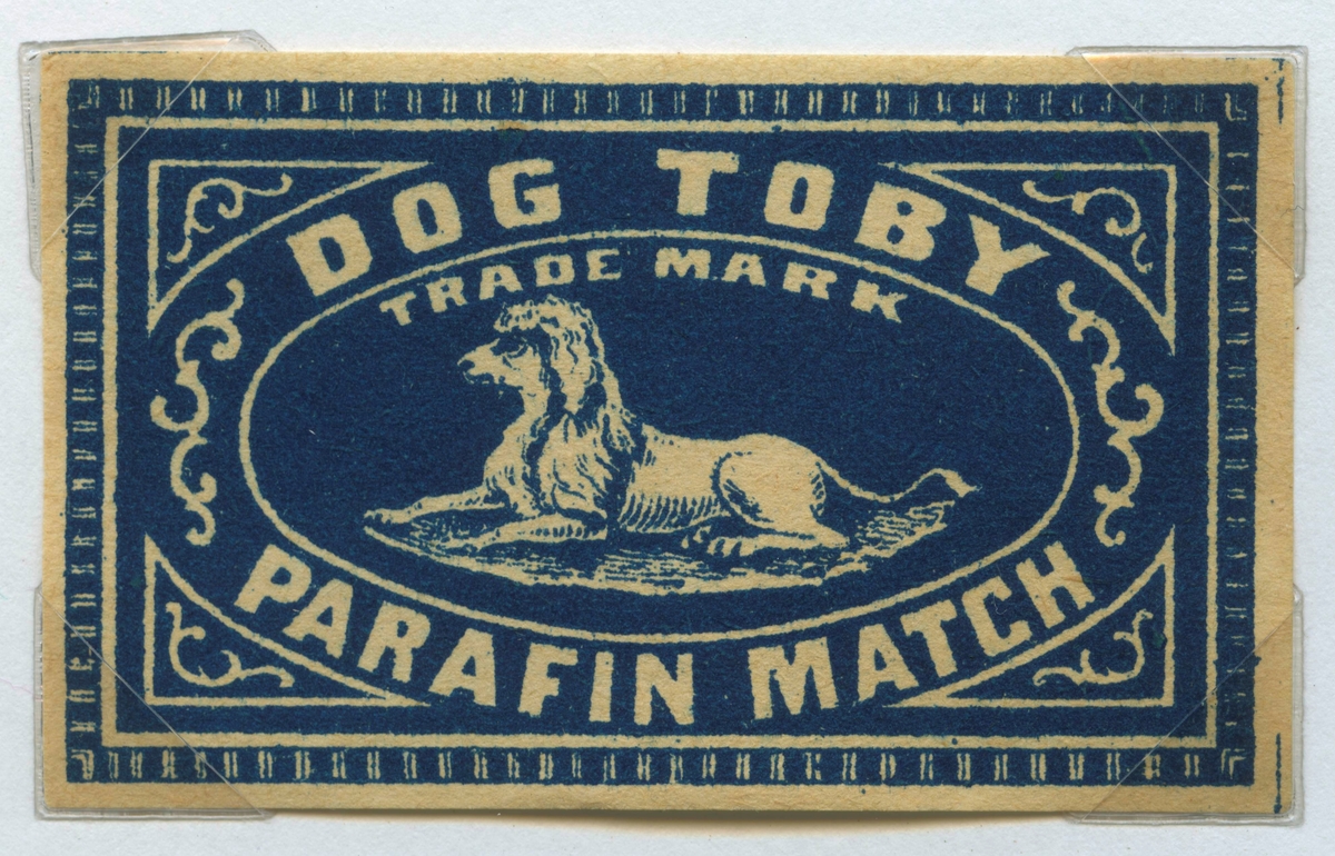 Titel: Tändsticksetikett från Nybro Tändsticksfabrik, "Punchs dog Toby." Handlanden Johannes Petersson i Gräsgärde var först att starta en tändsticksfabrik i Nybro på 1860-talet. Den fabriken var nerlagd 1873 när apotekaren Carl G Fohlin tog initiativet till nästa fabrik som bar namnet Nybro Tändsticksfabrik AB. Den fabriken var belägen i byn Göljemåla i Madesjö socken. Fabriken drevs fram till 1878 då bolaget gick i konkurs. Alldeles i jämte den gamla fabriken byggdes 1876 en annan tändsticksfabrik av Ludvig Möller från Kalmar. Fabriken som endast tillverkade fosfortändstickor med ett tjugotal anställda, blev inte långvarig och 1878 gick den också i konkurs. Nu är det dags för nya ägare att träda in på arenan. 1879 rekonstruerades tändsticksfabriken av en ny styrelse med Gustav Ohlsson i Brånahult och P C Jonsson i Östra Bondetorp samt J G Blomdell som också var disponent. De köpte in Möllers konkursbo men ganska snart lades tillverkningen ner och flyttades till huvudfabriken straxt norr om blivande Långgatan. Under J G Blomdells ledning stiftades ett aktiebolag som med framgång drev tändstickstillverkning vid Nybro Köpings tändsticksfabrik. (Nybro Säkerhetständsticksfabrik, 1881)Tillverkningen var nu endast säkerhetständstickor. Fabriken överläts så småningom till N Simonsson, Nybro och disponent A Ekendahl, Uppsala. 1913 såldes fabriken till Kreugers tändstickstrust AB Förenade Tändsticksfabriker. Fabriken lades ner efter något år. Fabrikens lokaler användes sedan av Orrefors sliperi, Engströms Formgjuteri och senast från 1932 Nybro Svarveribolag. De gamla industribyggnaderna vid Långgatan i Nybro och som inrymde tändsticksfabriken revs på 1970-talet. I en trossbotten fann man tändsticksaskar från hela tändsticksepoken och kunde glädja samlarna av askar och etiketter i Nybro. Man fann också den speciella trämall som användes vid askvikningen i hemmen kring sekelskiftet. (Uppgifterna hämtade från http://thoresmatches.se/tandsticksfabriker/nybro_tandsticksfabrik.htm)