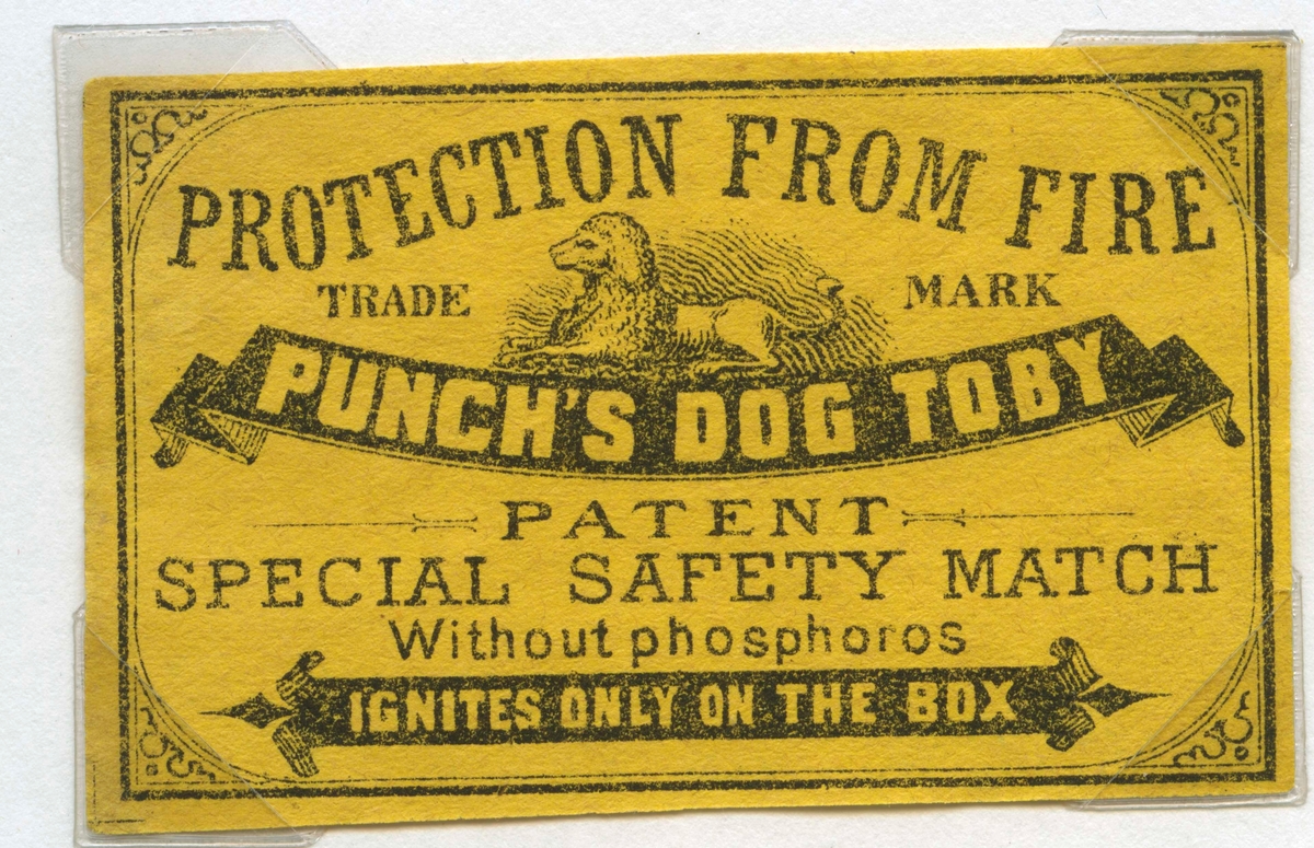 Tändsticksetikett från Nybro Tändsticksfabrik, "Punchs dog Toby."