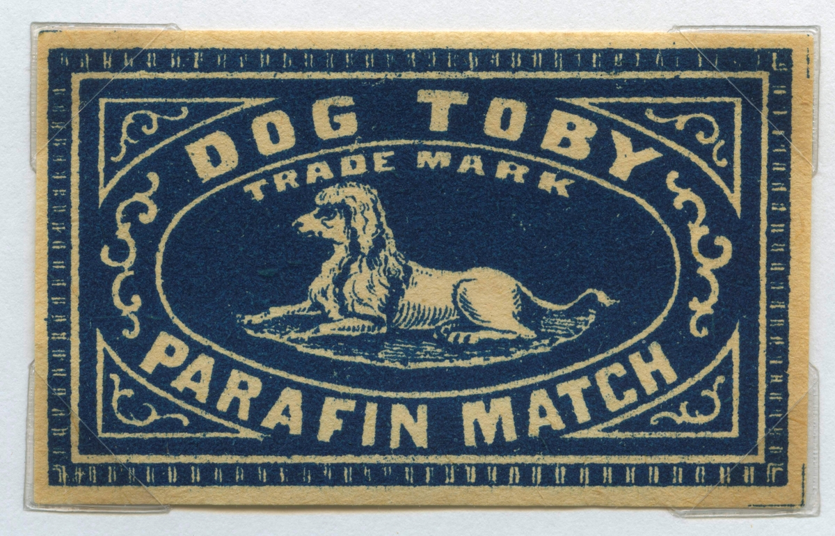 Tändsticksetikett från Nybro Tändsticksfabrik, "Punchs dog Toby."