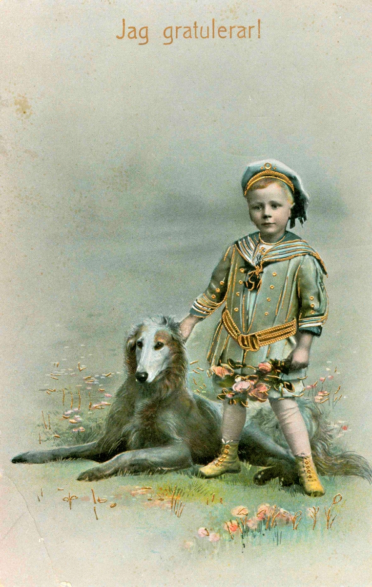 Ett gratulationskort till Karin Andersson, Odengatan 4 (byggmästare N J Andersson), Kalmar från moster Louise.
