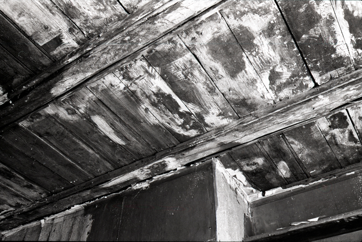 Krusenstiernska gården. Köket, taket i östra delen, över skåp och före detta köksingång. Fotograferat i samband med restaurering.