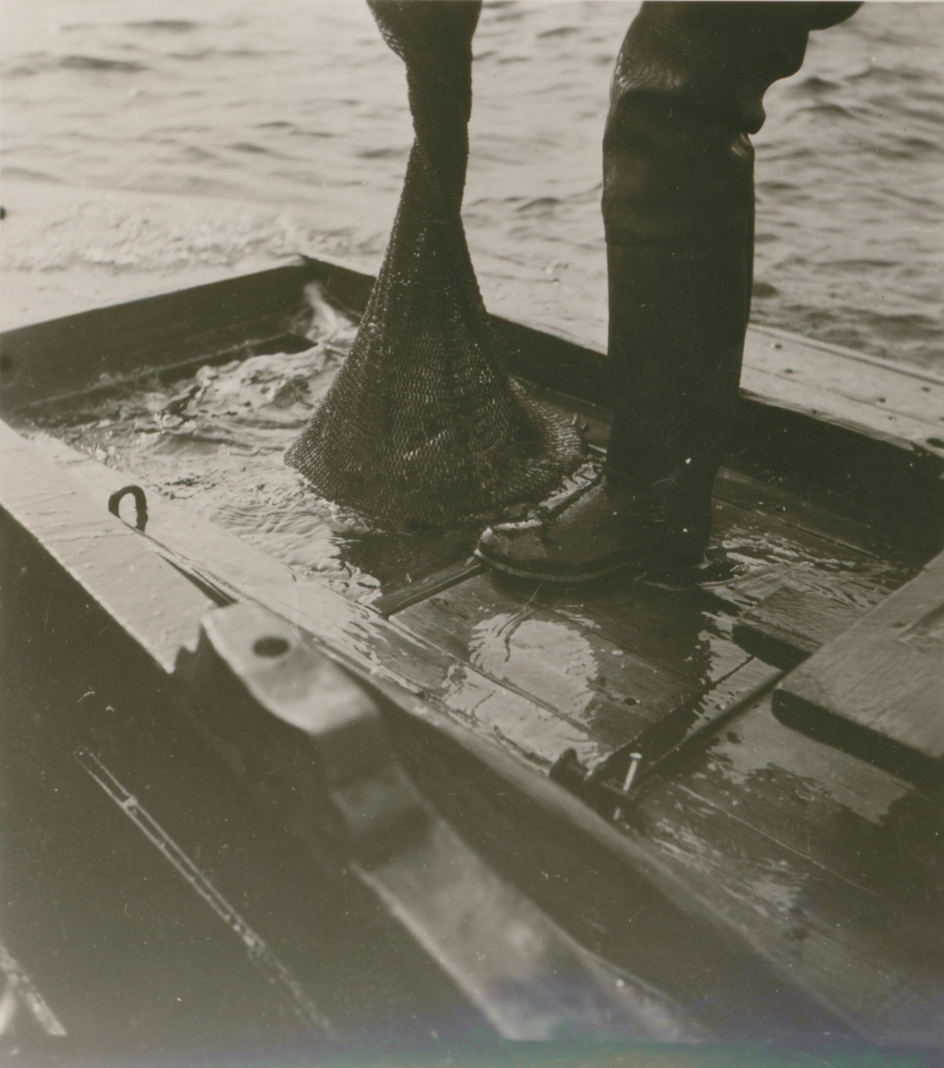 Ålbottengarnsfiske. Ålen töms i sumpen.