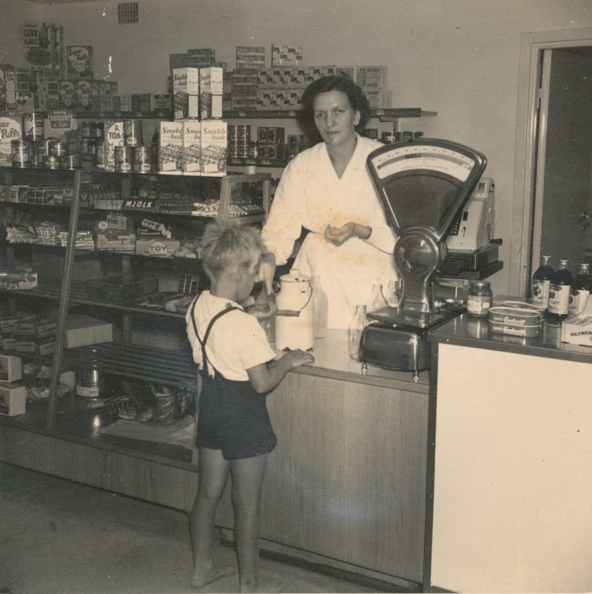 Interiör från Konsumbutiken på Fatabursvägen, (butik nummer 11), 1955.